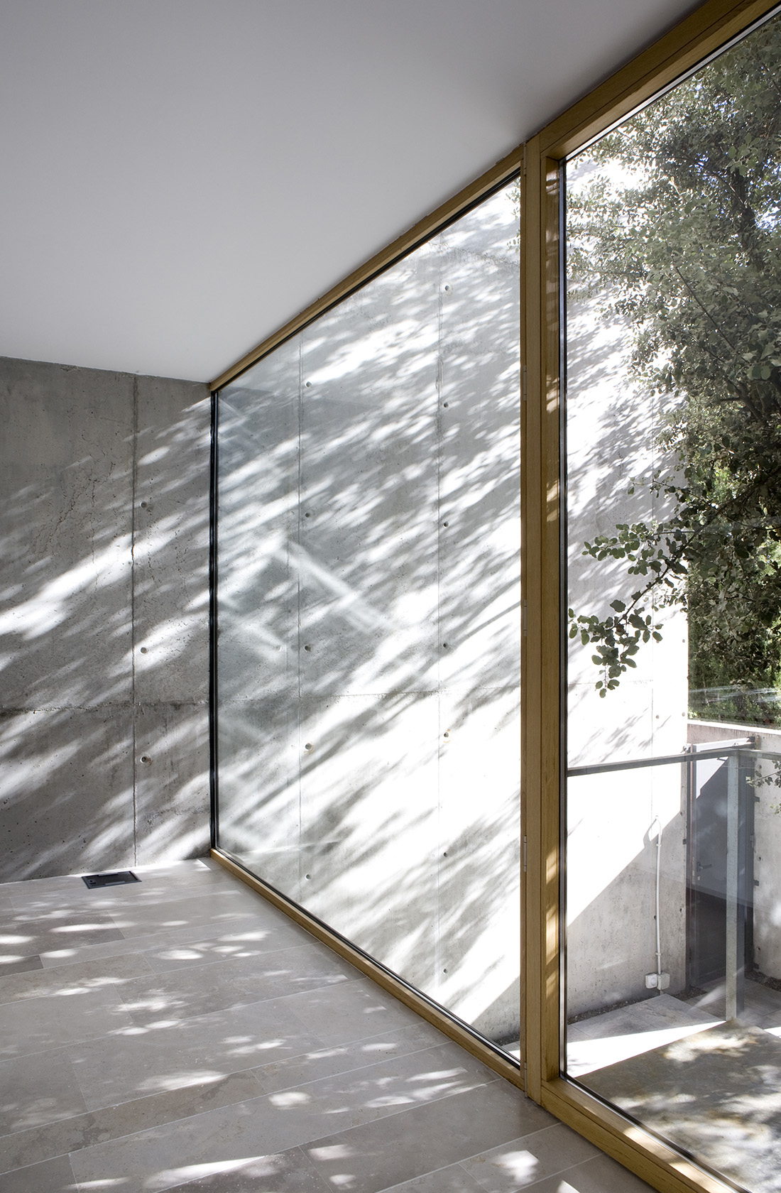 Located in the outskirts of Madrid, the plot has many outstanding oak trees and is next to some well established buildings. The main objective was that the building itself be alandmark within the estate and to show ÁBATON’s work in a neat and symbolic manner. It is a multi-purpose area that has a show-room, offices and the construction company’s warehouse. The concrete façade was set back and a tree-lined area was given over to a public path suggesting a friendly environment.