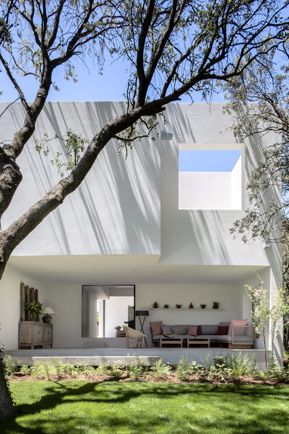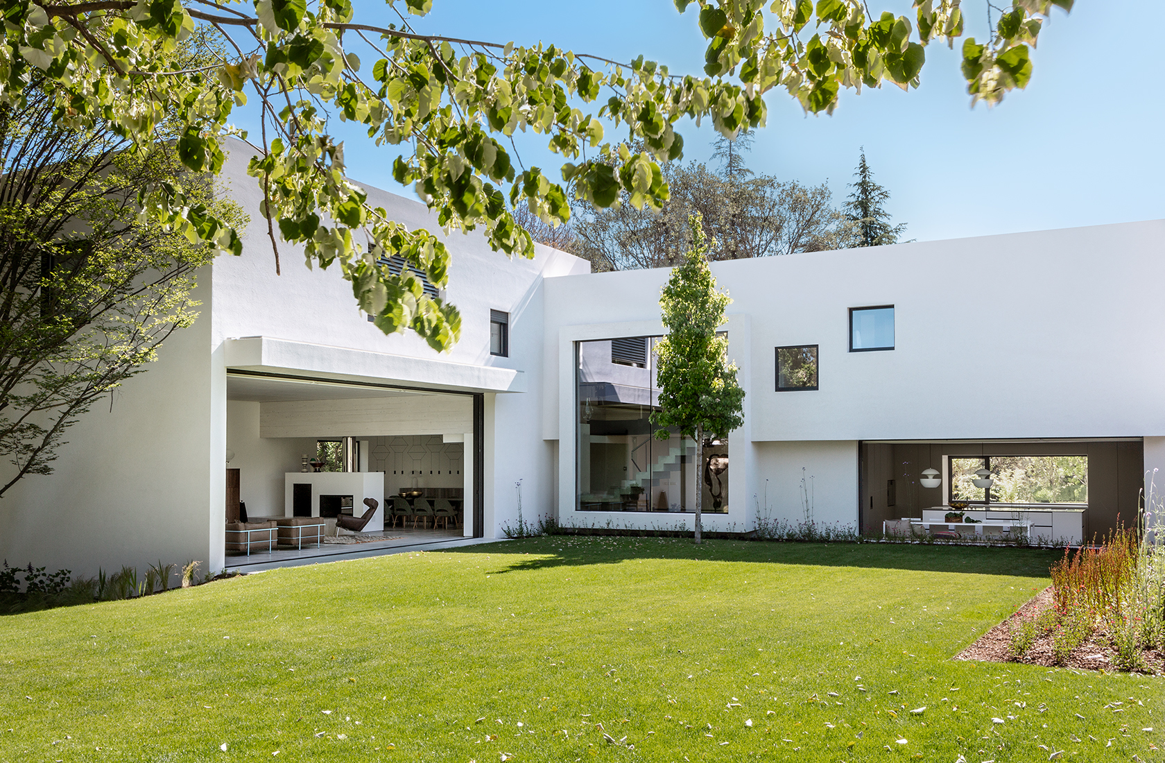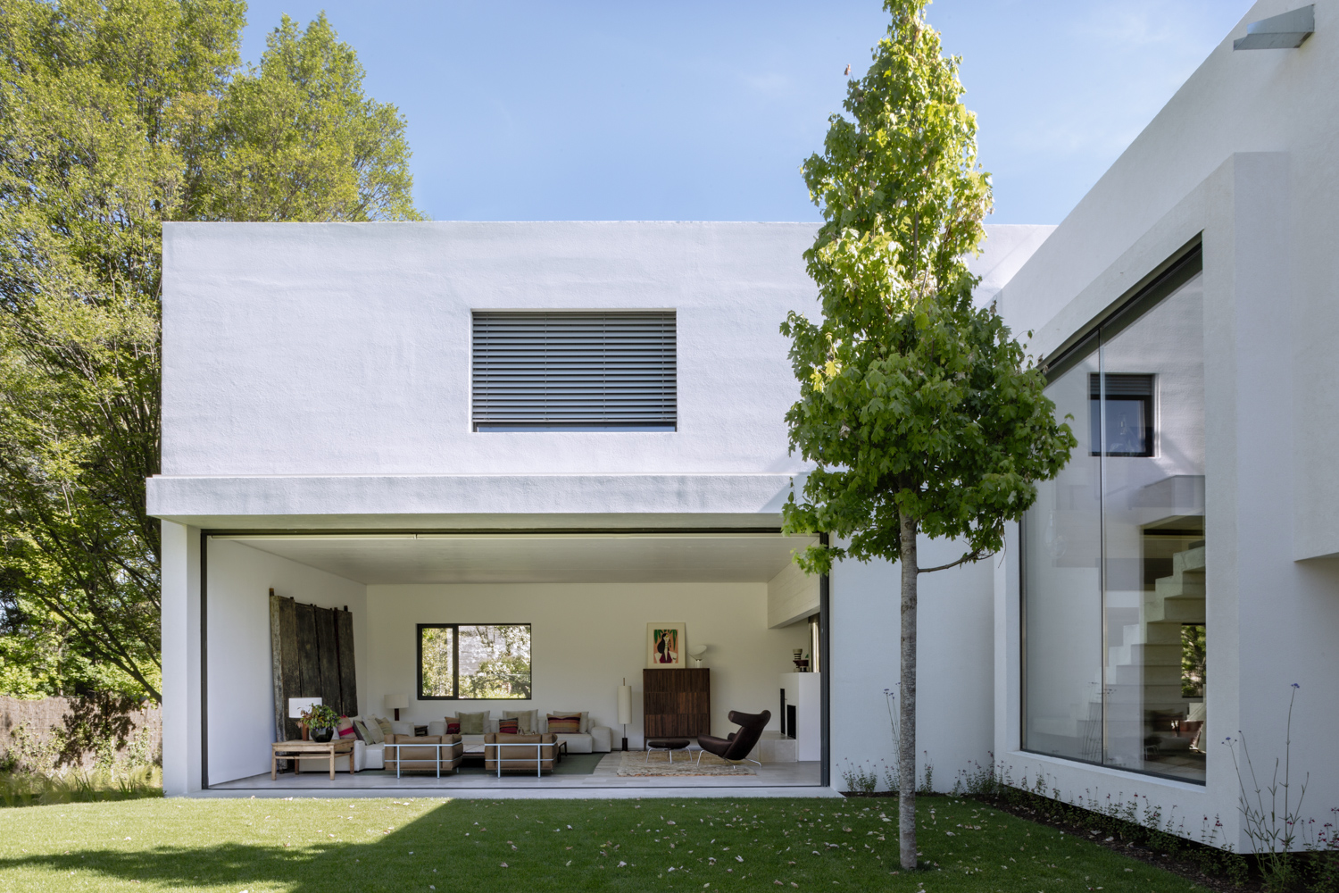 Facing the South, the house arranges the most private rooms towards the interior of the plot and the household services area towards the exterior, also aiming for the best sunlight in all the living spaces and having the largest garden area towards the South.