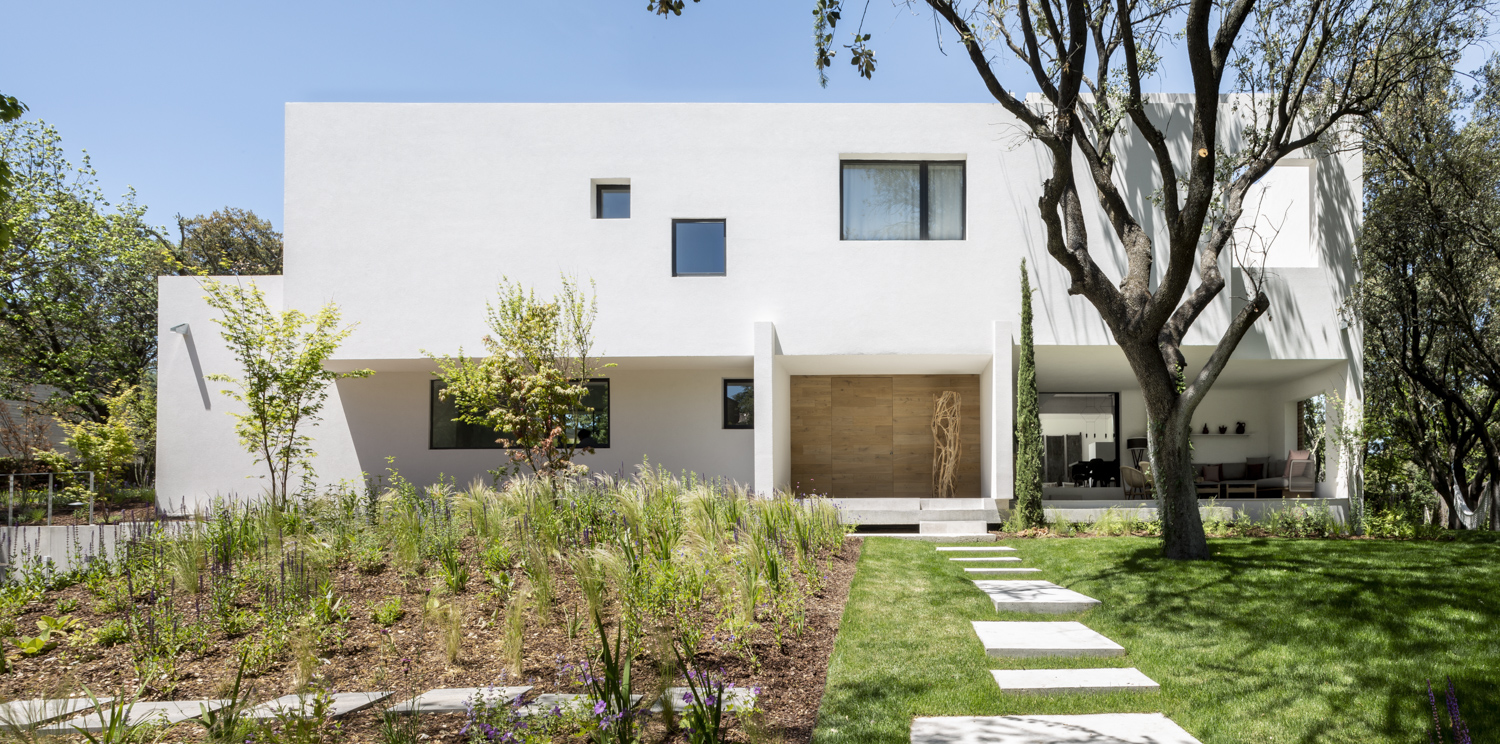 The house is isolated on the plot, and the topography has been changed just for the construction establishment. All the built elements, including the entrances, have been arranged to preserve the existing holm oaks and connect them to the building, looking for the insertion in the landscape.
