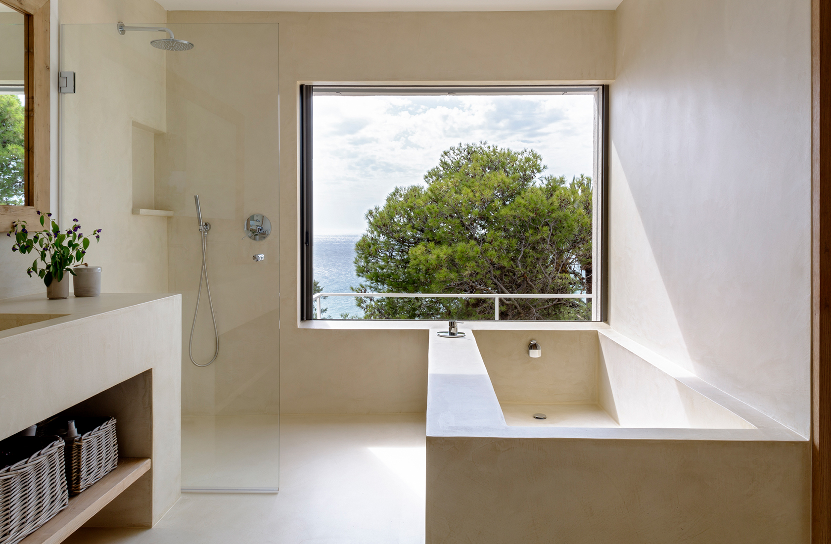The house is about 450 square meters, it is located in the island of Menorca and it has three floors to suit the steep topography of the land and to promote the joy of the wonderful views from most of the spaces of the house.