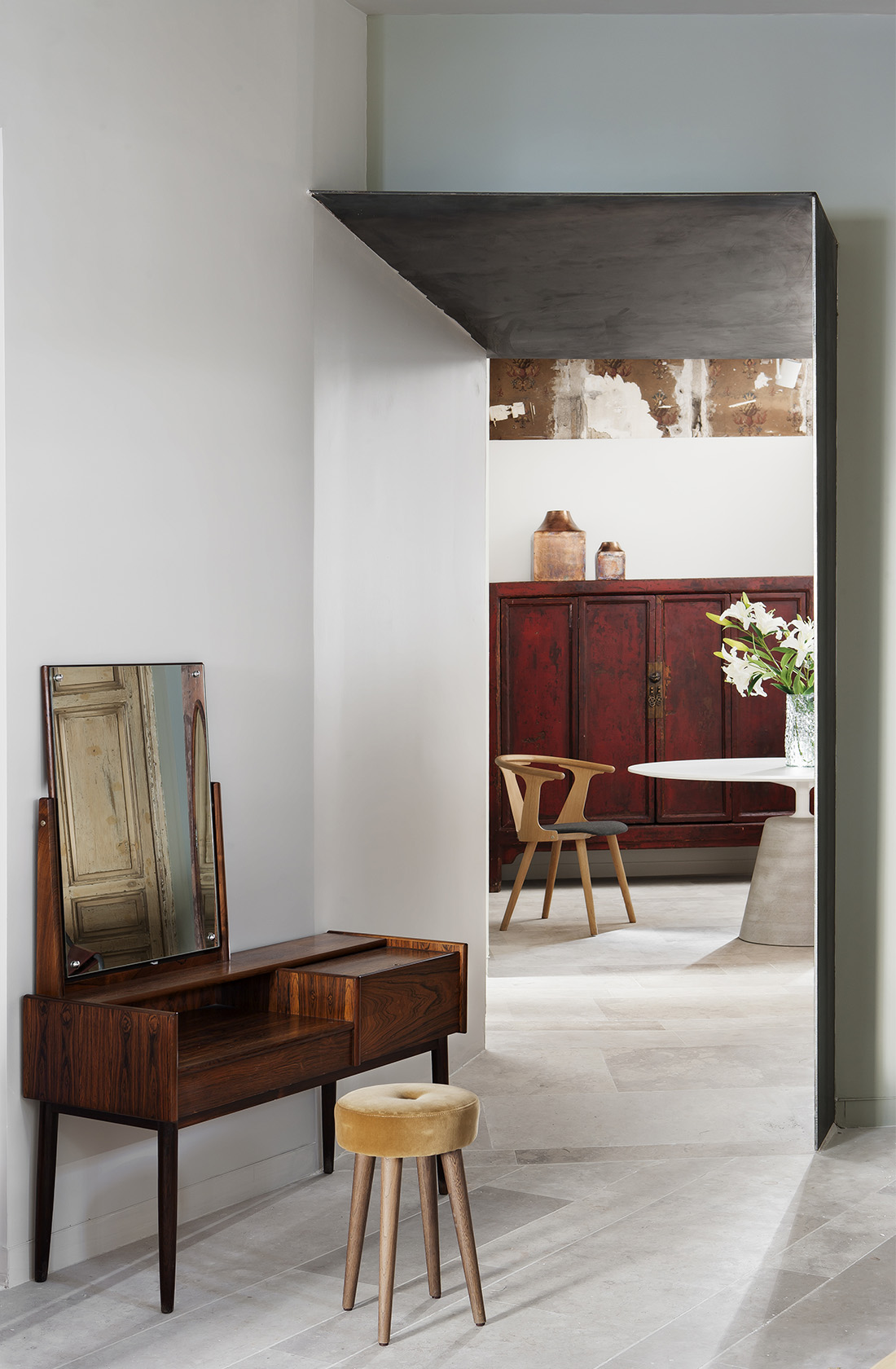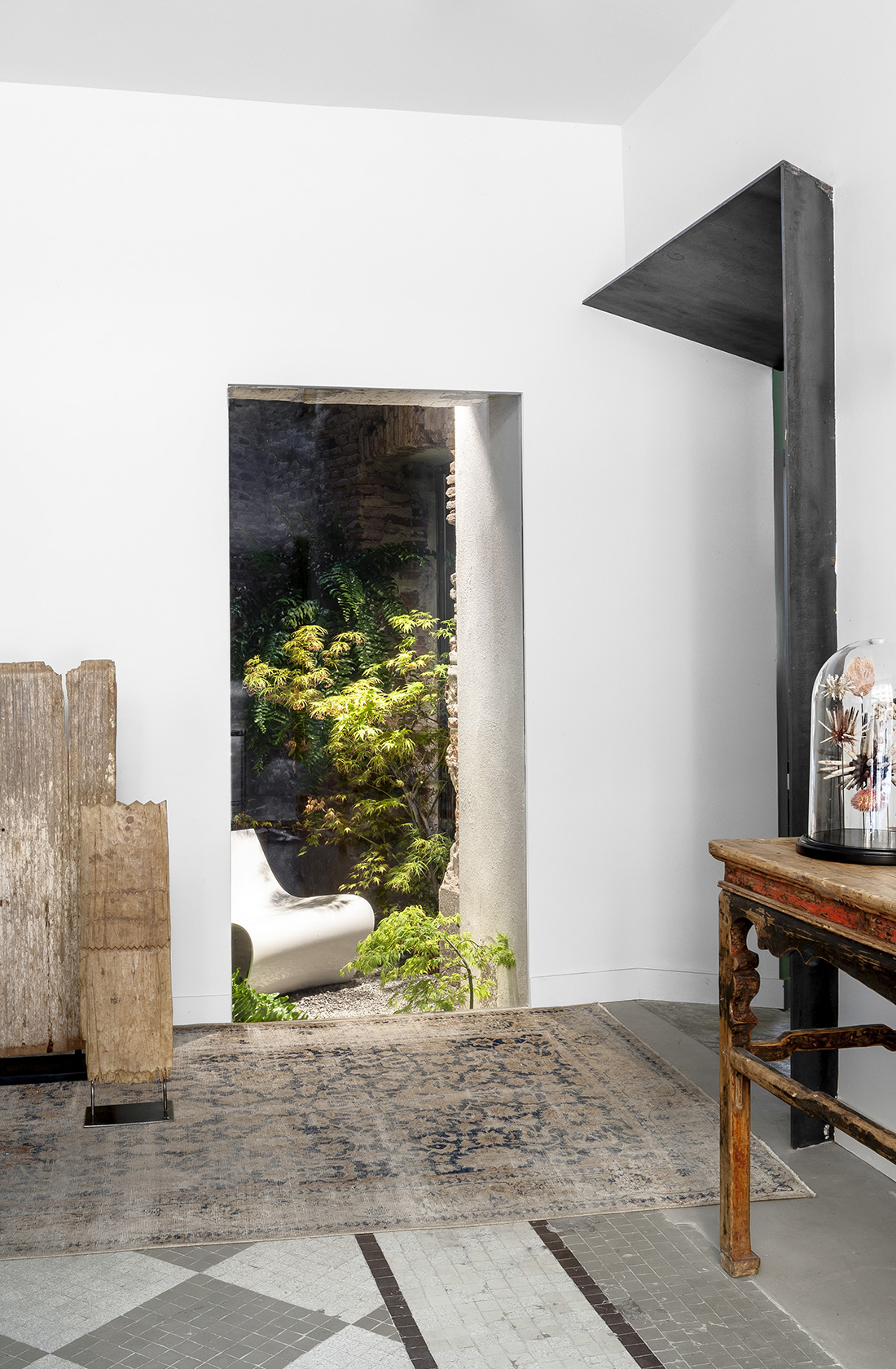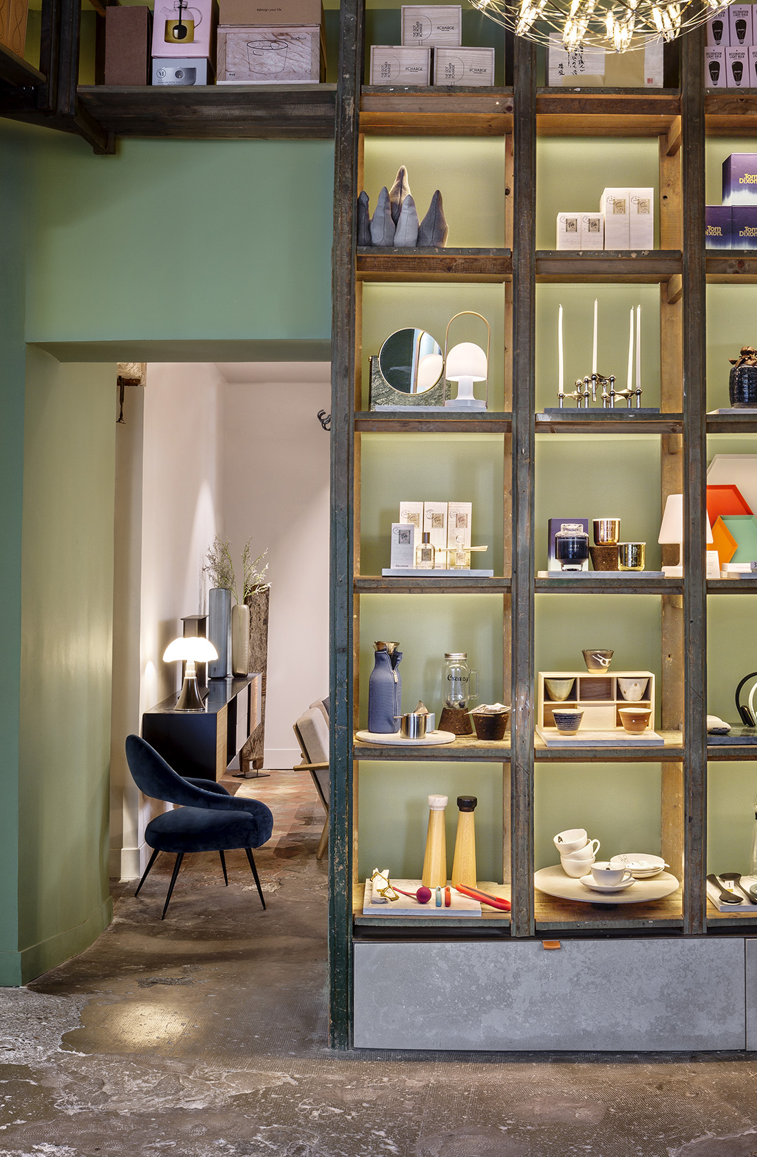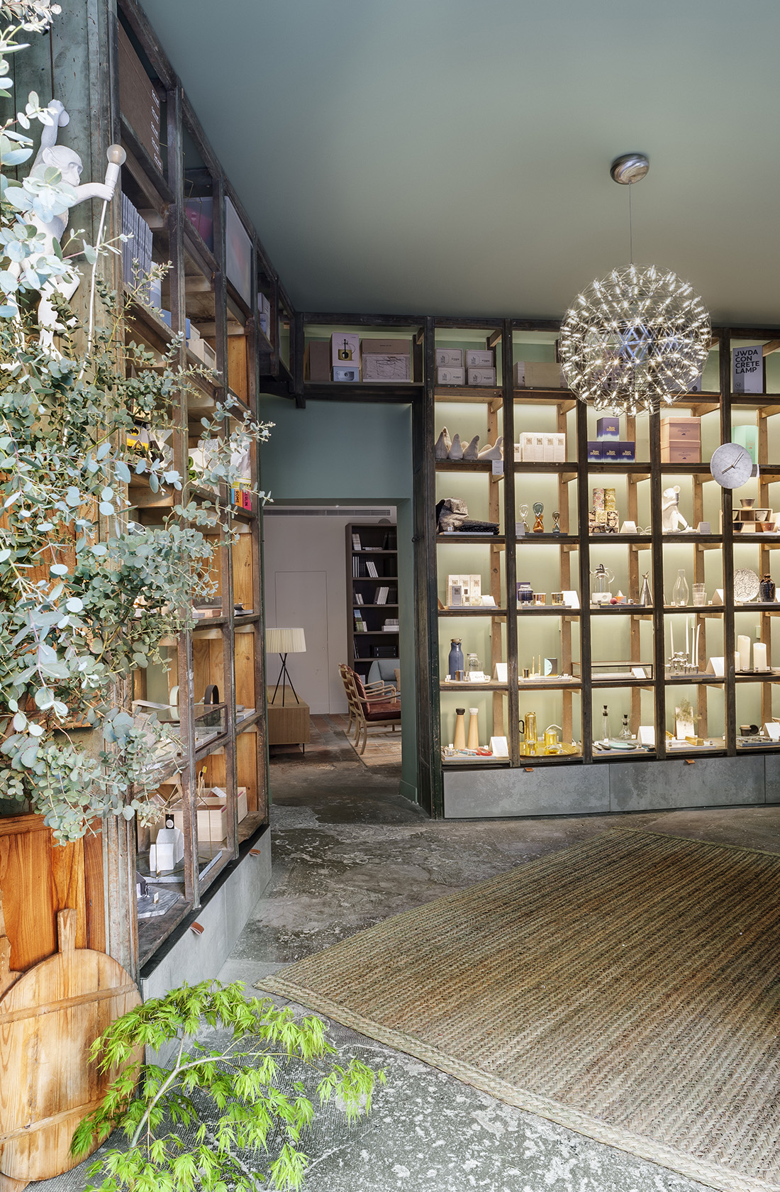 The flagship includes a new thoughtfully curated and displayed design gift section, for which the architects repurposed the hardware store’s original shelving, with the clever addition of a sophisticated and discrete lighting system. Cutting edge brands share space with items by local artisans and designers, complementing BATAVIA’s eclectic mix of contemporary and vintage furniture, lighting, original art, antiques, and vintage rugs.