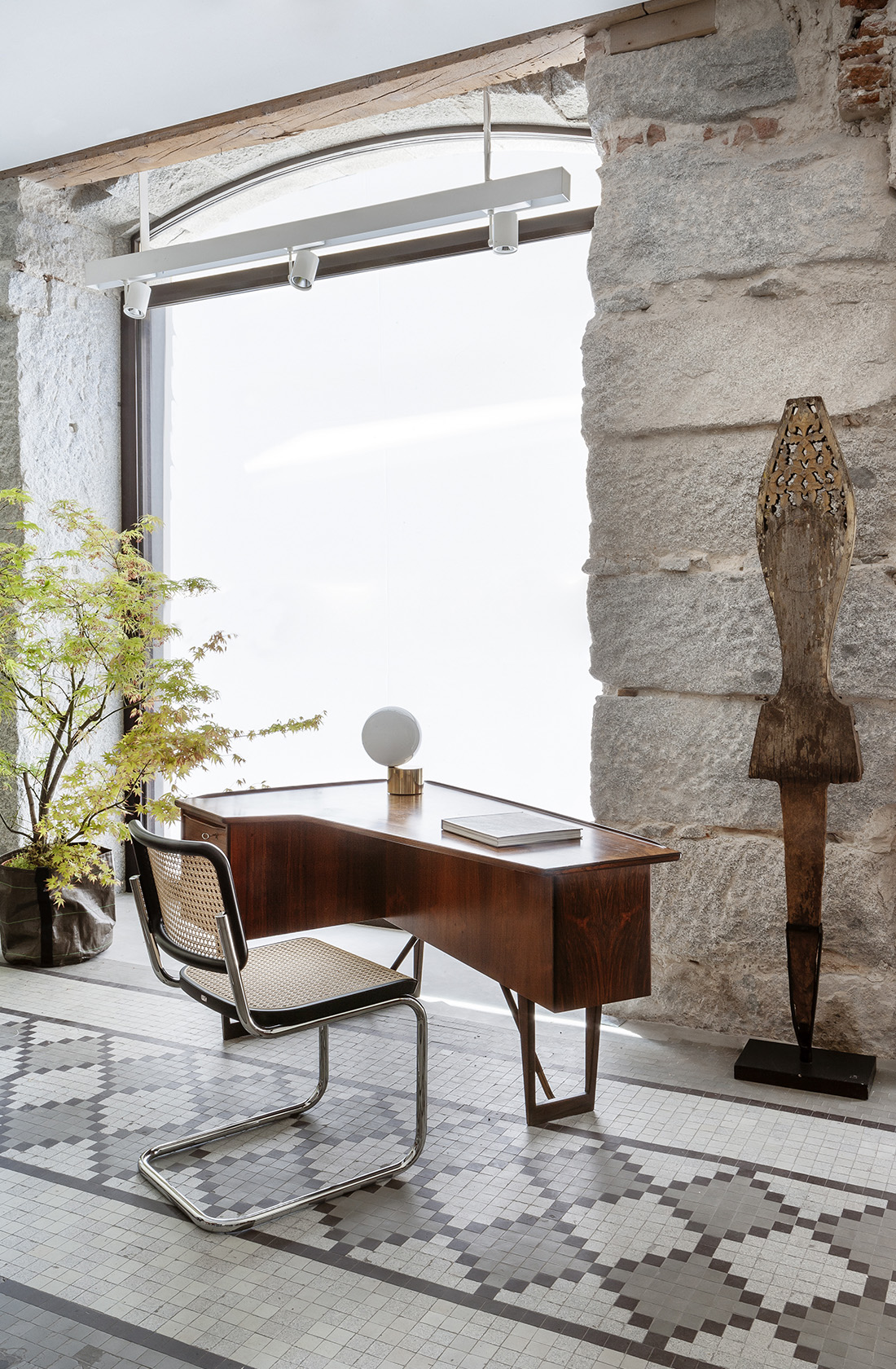 BATAVIA, a Madrid destination furniture showroom for contemporary and modern design, celebrates its 20th year in business with the launch of its new flagship space in the Palacio de Santa Bárbara. In a 400sqm space, designed by the affiliated architecture studio ÁBATON, the former stables of the mid 19th century mansion have been transformed into a serene modern space. In homage to its last tenant, a hardware store which had occupied the space since 1906, ÁBATON decided to keep several elements of the existing space. Exuding warmth and patina, the space created includes original mosaic floors, exposed solid stone support columns, in addition to new large steel cased apertures which link the various spaces of the new showroom.