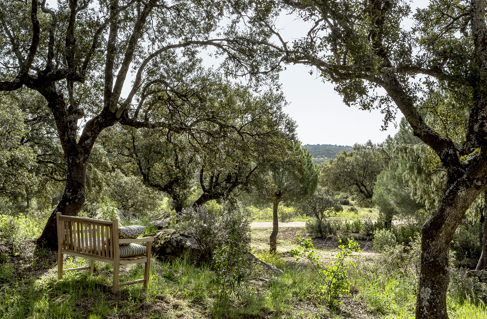 La intervención se sitúa en una finca de algo más de treinta hectáreas, es una dehesa con magníficas encinas y un sotobosque de retamas jaras y espinos. Algo muy parecido al paraíso. En la zona central de la finca existían diversas construcciones, una casa principal, una de guardeses, unas cuadras y un palomar, suman entre todas seiscientos metros cuadrados construidos en los que se materializa la intervención.