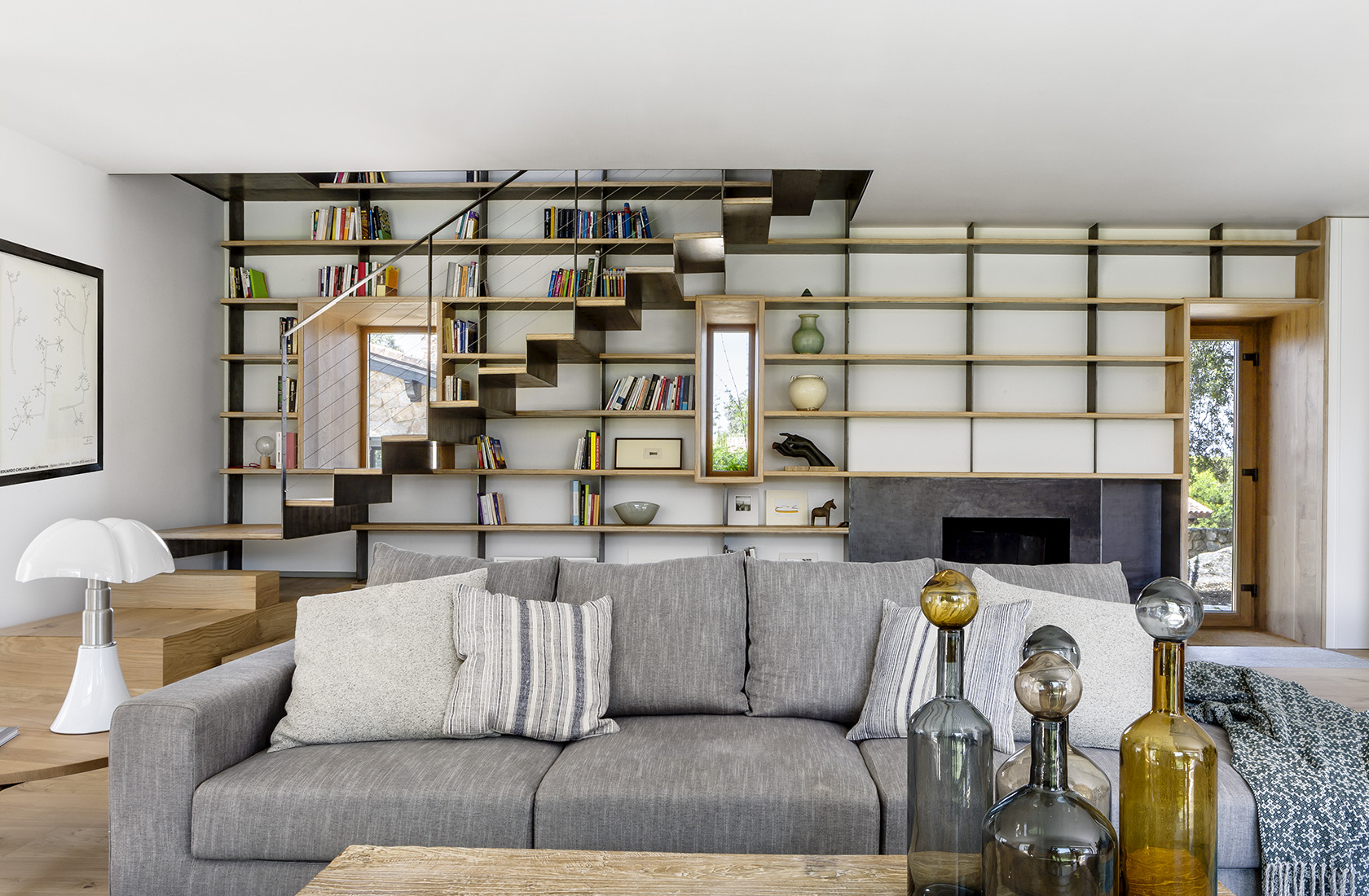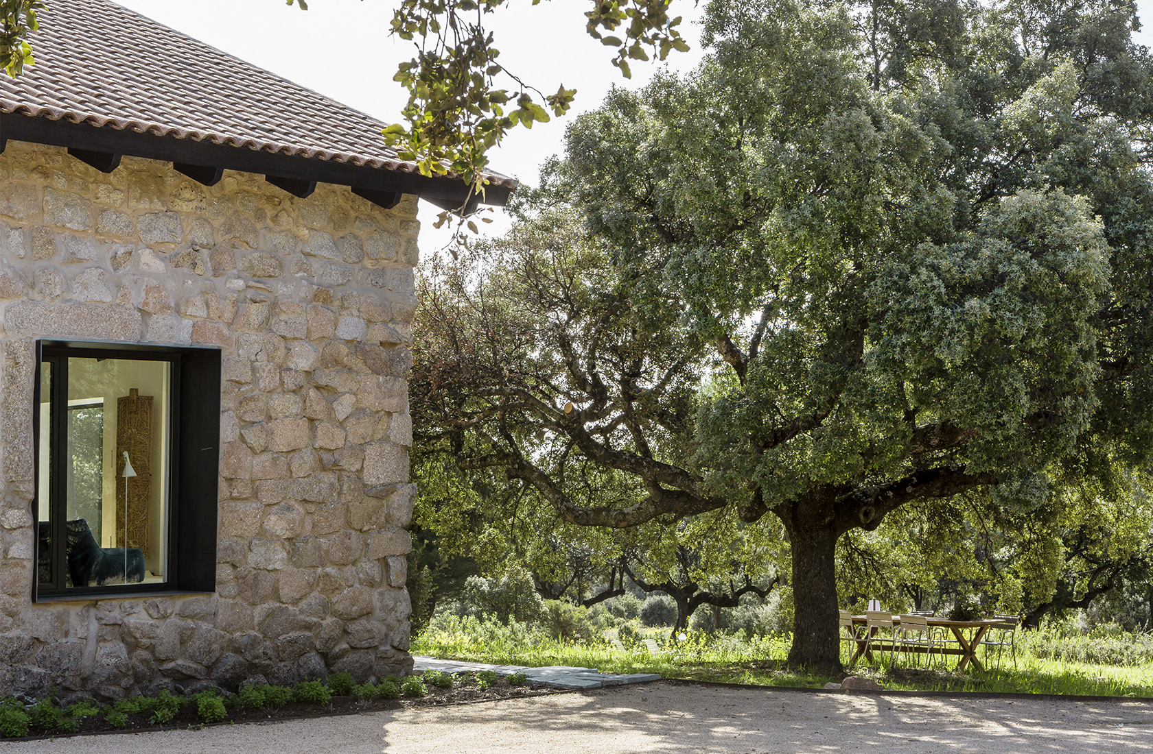 La intervención recupera los muros de 70 cm de piedra de granito y los perfora con huecos de gran tamaño para modular la luz. Se trabaja el espacio como un elemento sólido, como si se tratara de una talla. Estos huecos se configuran como lugares donde estar para disfrutar simultáneamente de la protección y el confort de la casa y de la impresionante naturaleza que la rodea.