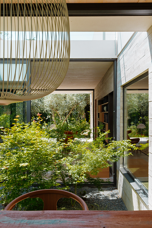 The starting point for this project was to preserve the site’s existing vegetation. All the built elements, even the arrangement of the access routes to the house, have been chosen in order to preserve the existing holm oaks and the other vegetation in the plot, linking it to the dwelling.