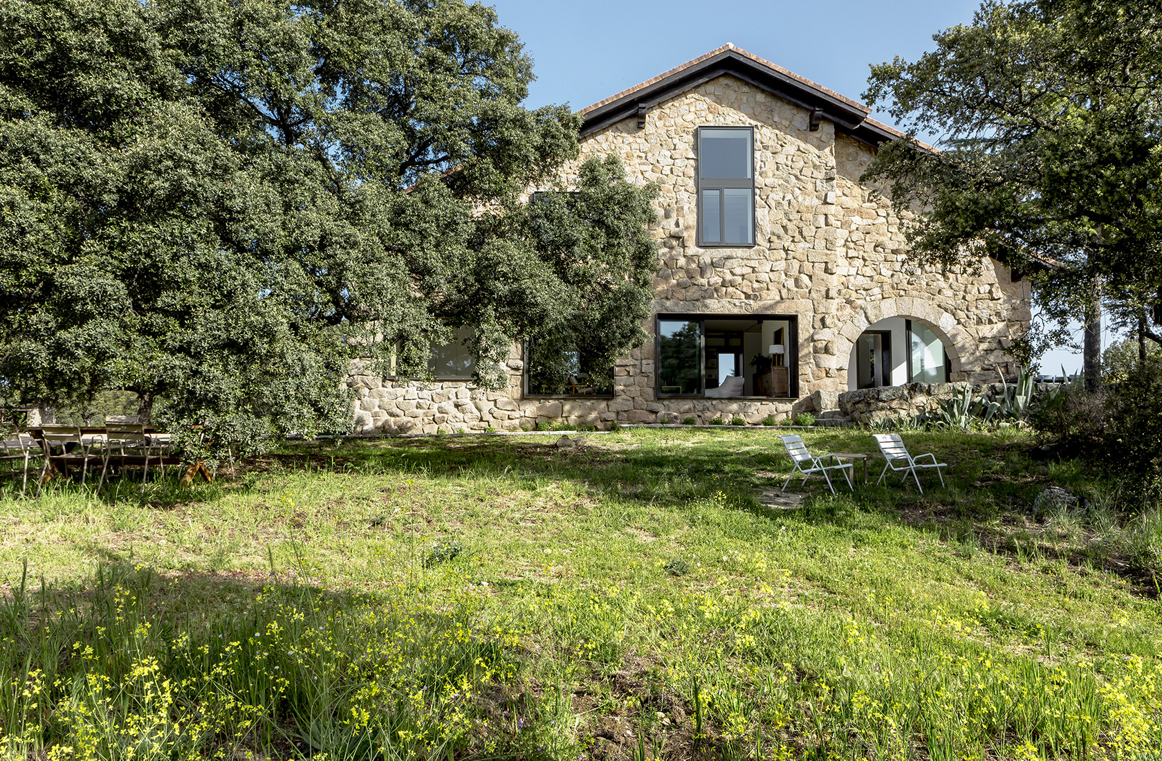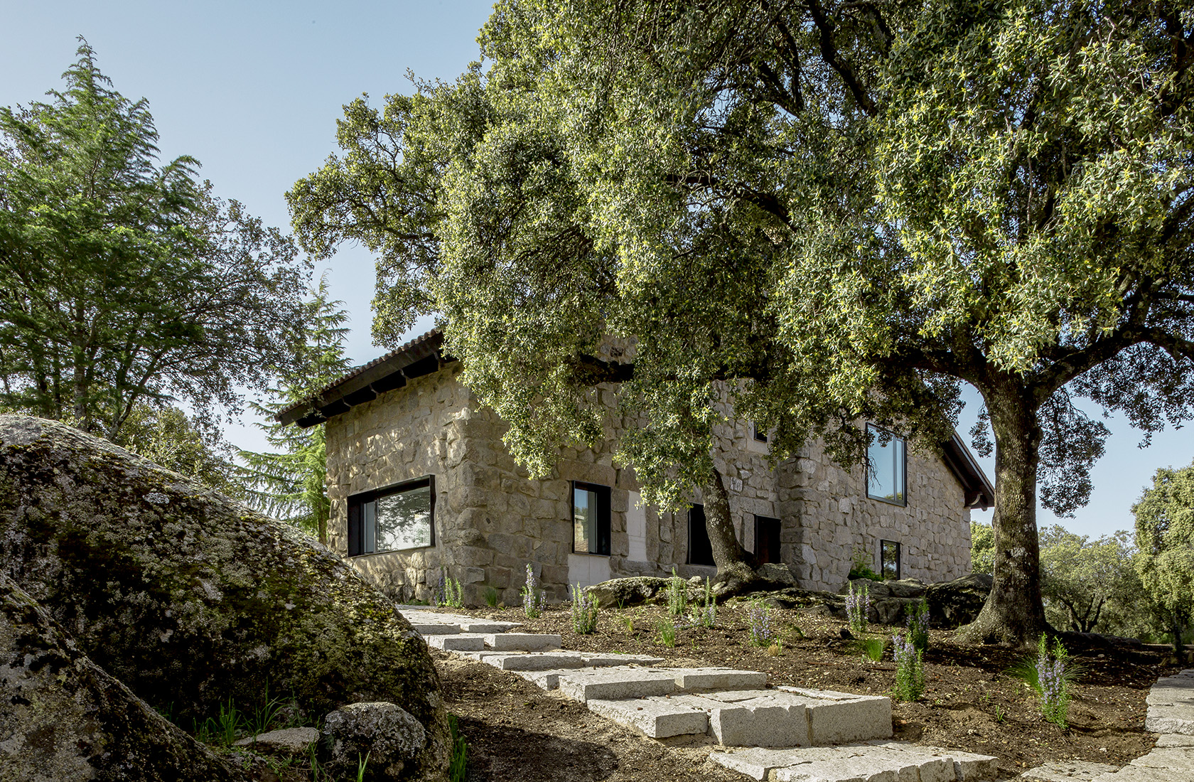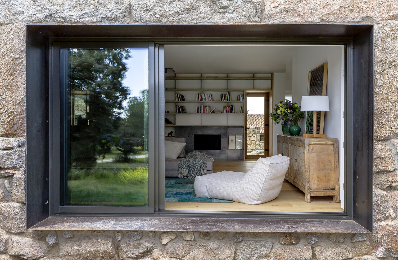 The project was focused on recovering the 70 cm granite walls. Making the pre-existing perforations bigger in order to let more light into the house. The space is treated as if it was a solid piece, carving it and perforating it. The holes in the walls are living spaces designed to enjoy the comfort of the house and the impressive nature that surrounds it.. Each hole is an extension of a pre-existing hole, so by looking at the facades you can reconstruct their original composition.