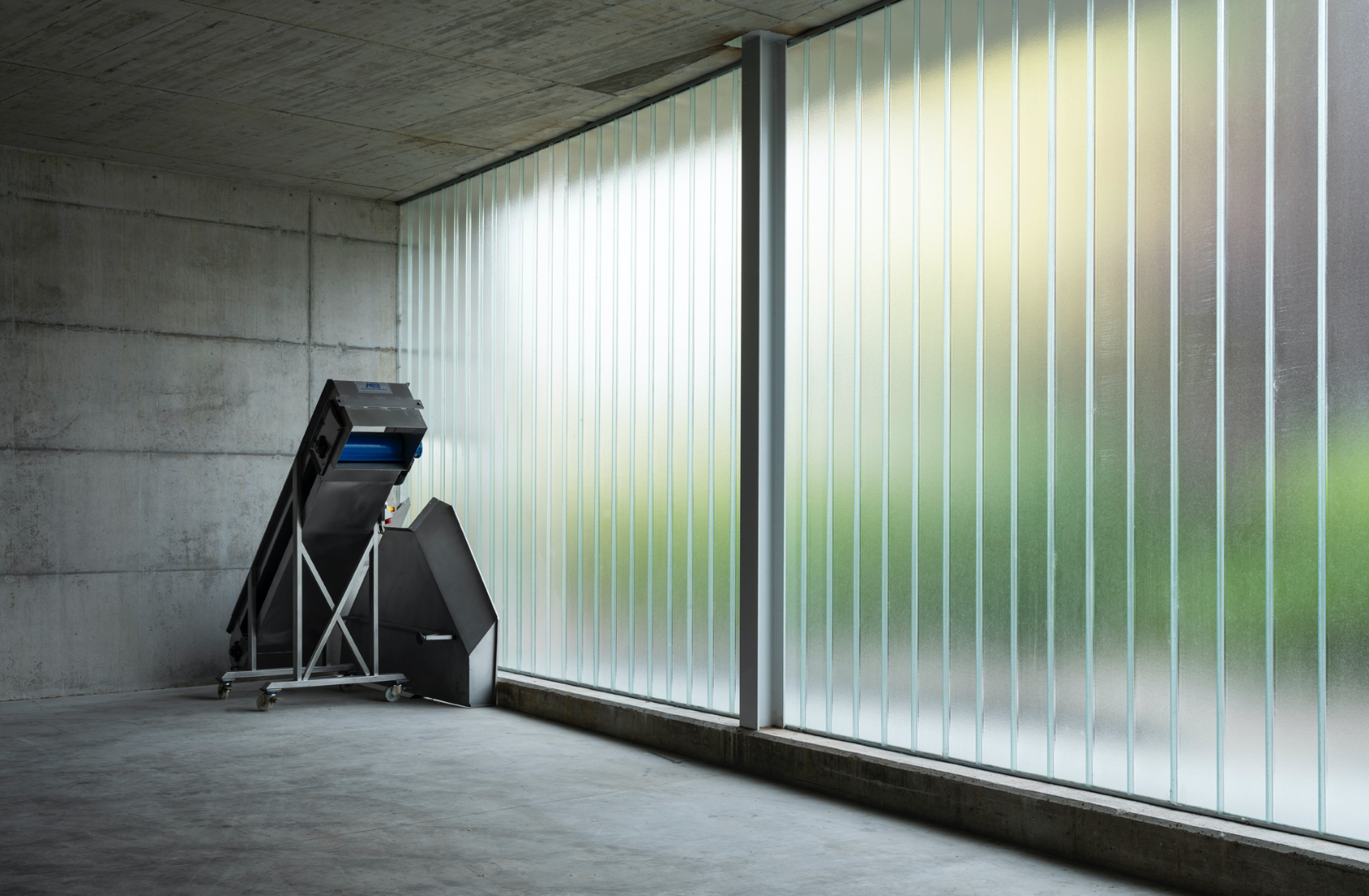 Resultan clave las geometrías sencillas propias de las naves industriales, pero el lenguaje que las materializa es diferente, completamente original e innovador. Se trata de una piel que da continuidad a paramentos y cubiertas.