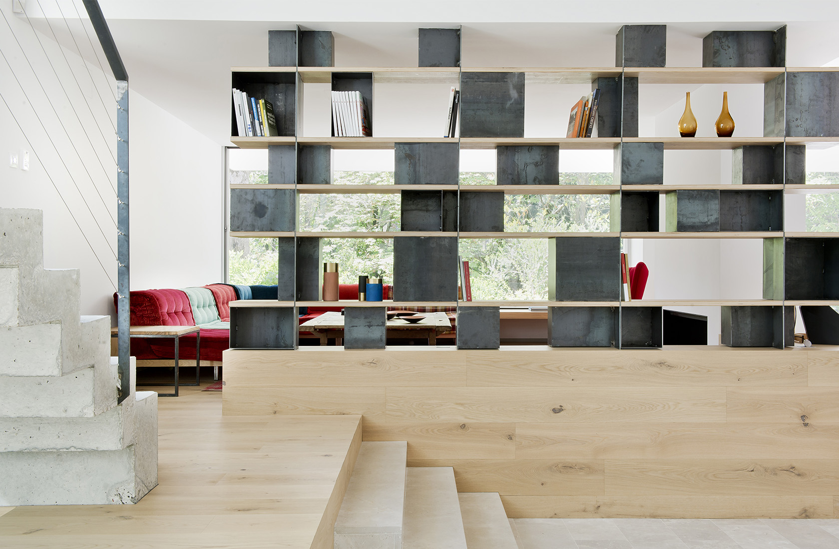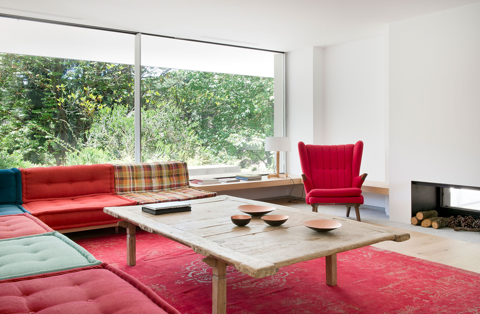 The living room was originally divided into three spaces at different levels which we wanted to keep, especially in the central area, a warmer space contained within a larger one.