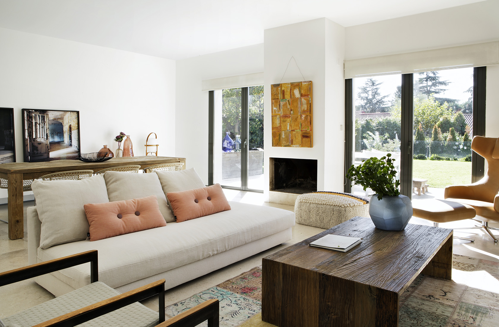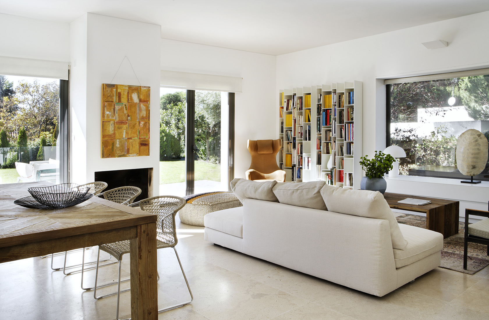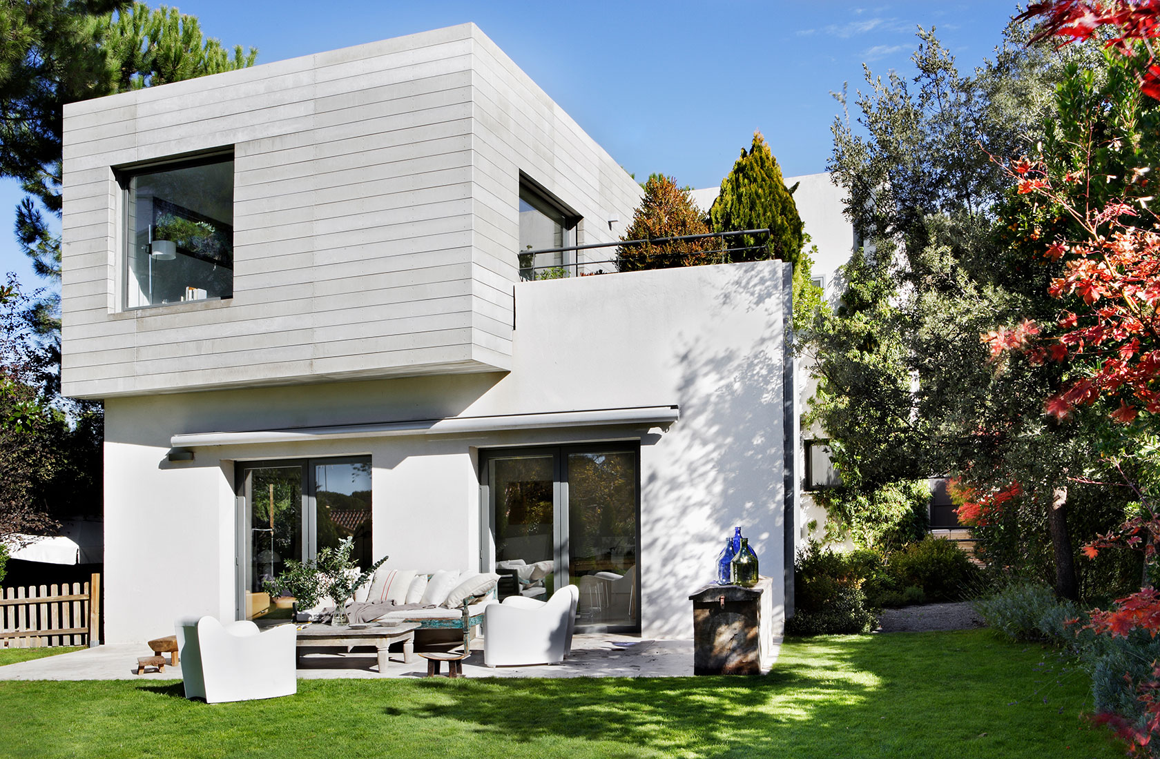 This terrace was added to the bedrooms by enlarging them without changing the number. This new construction has generated an overhang over the living room on the ground floor that is used as a veranda. The house is located on a large plot on the outskirts of Madrid, with very private outdoor spaces and great views. Due to the design of the house, there is a lot of privacy from the neighbors. The swimming pool is located at the end of the garden, on a different level, creating a gap in the garden that provides privacy. In addition, it has a living room with views to the garden, kitchen, basement with a playroom and facilities.