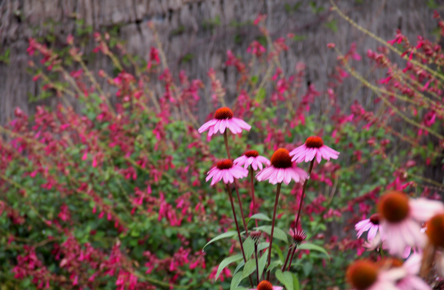 Alejándonos de la casa, el otoño está marcado por el conjunto de las grades flores blancas de las echinacea purpurea ‘white swan’ con gramíneas ‘nassella tenuissima’ que van virando su color desde el verde intenso al dorado del final del otoño.