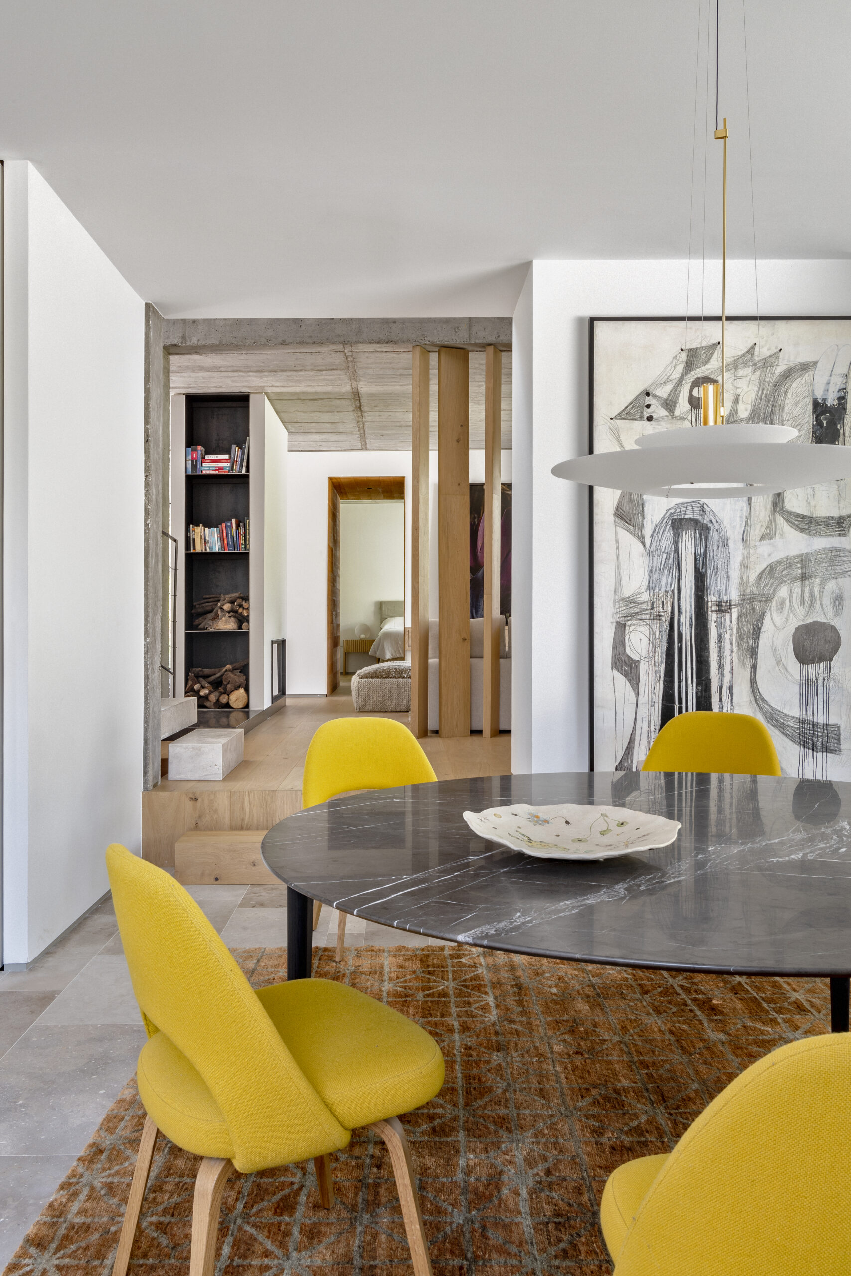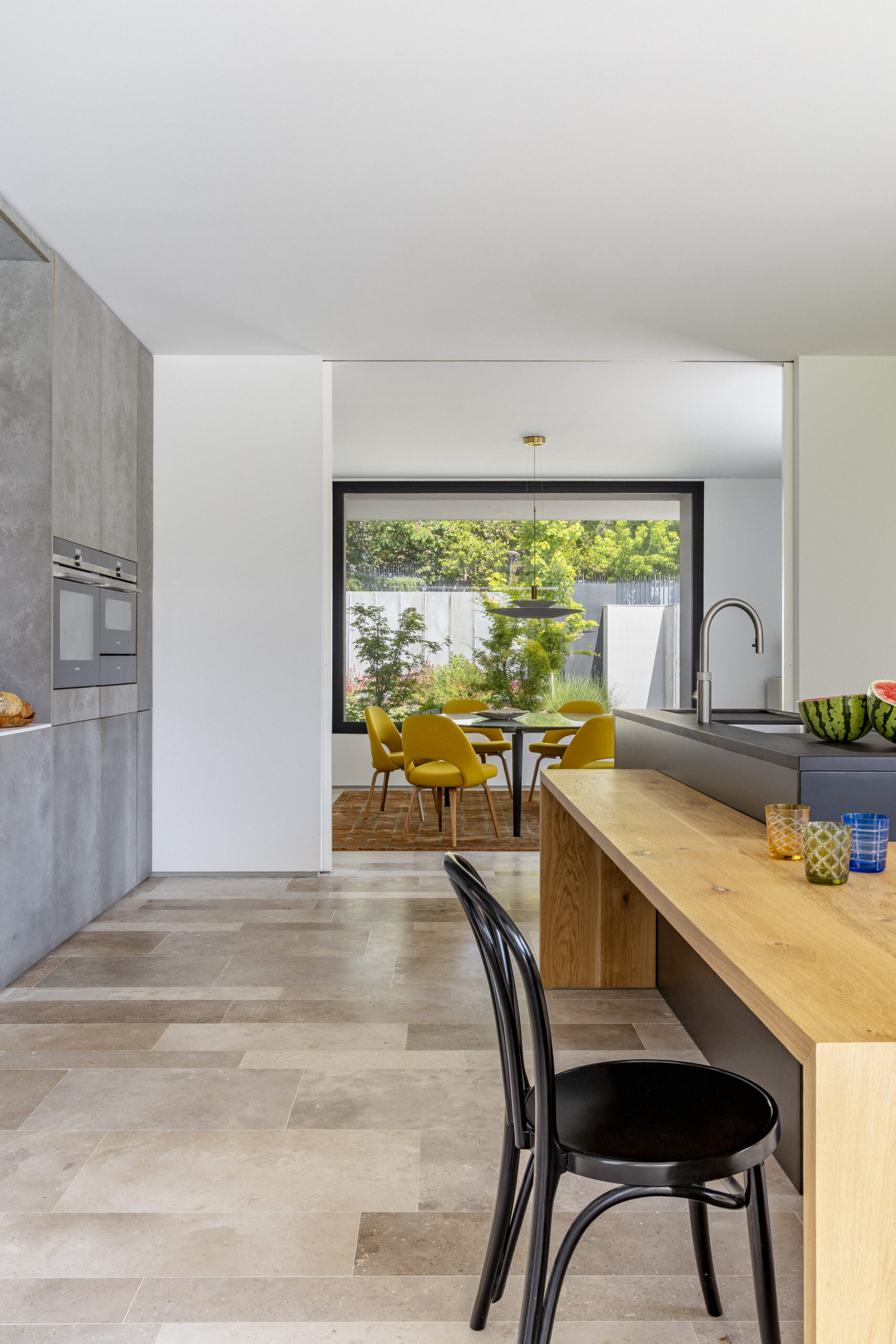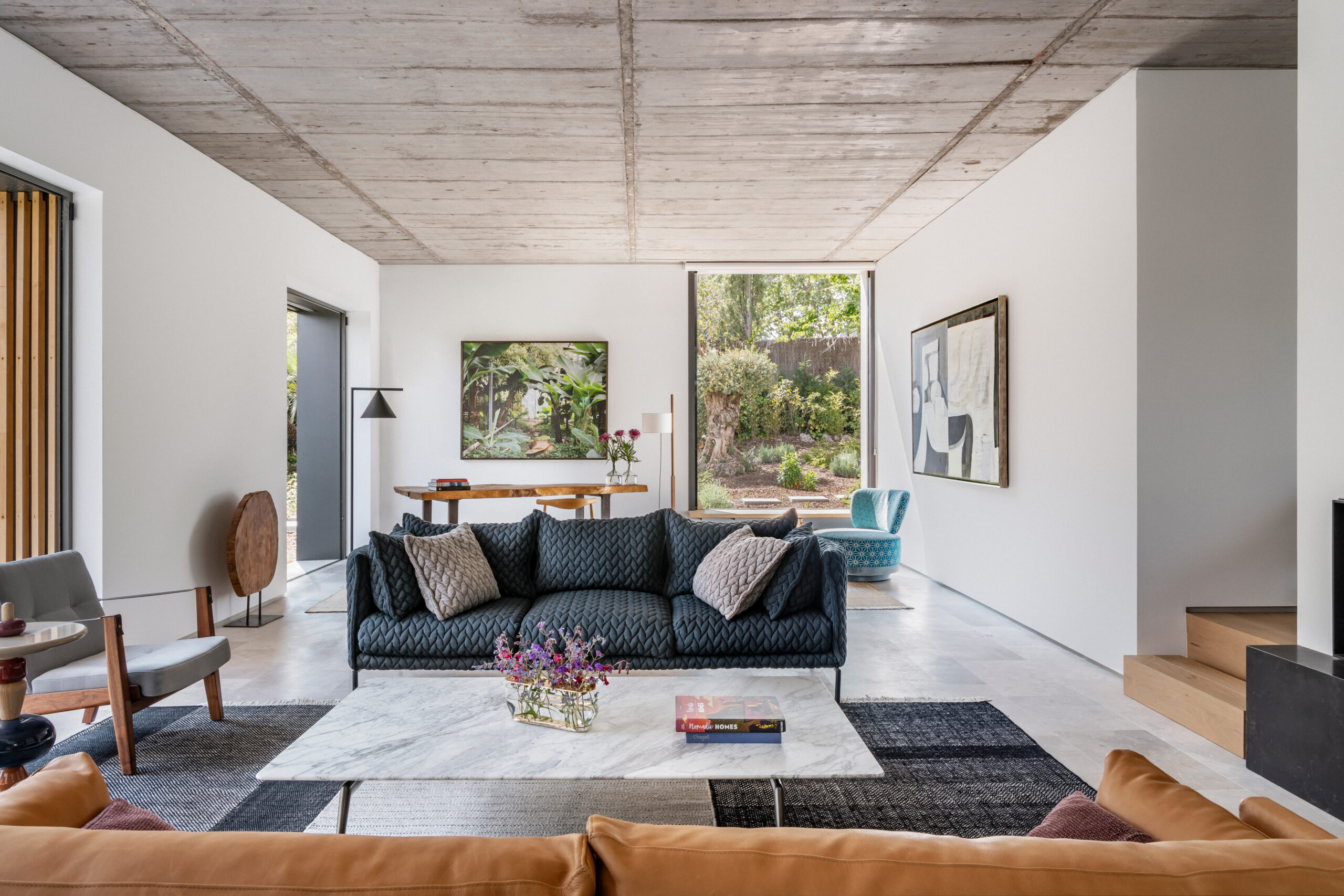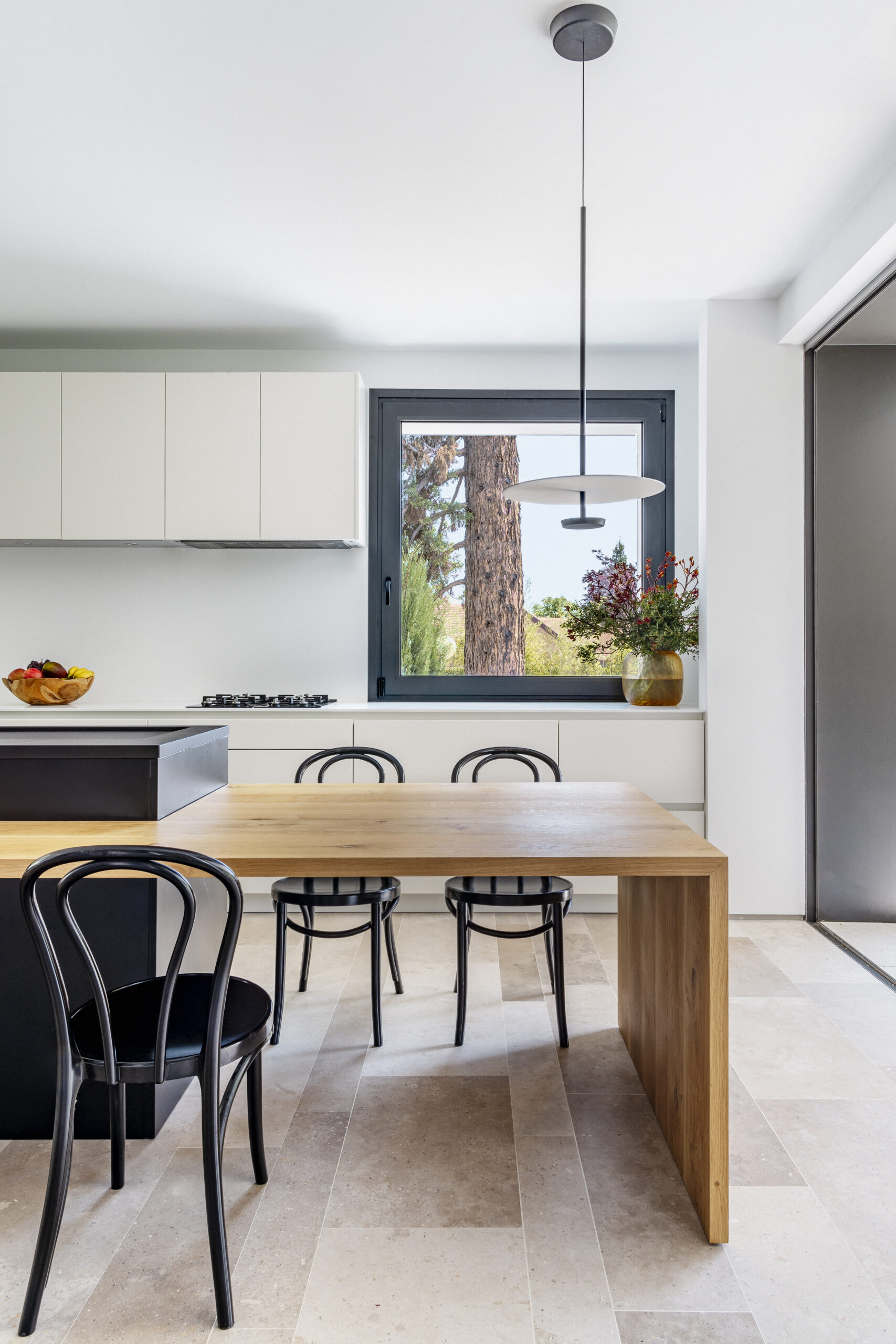 This volumetric play also enabled the development of a landscaped upper terrace that integrates vegetation into the home and invites rest.