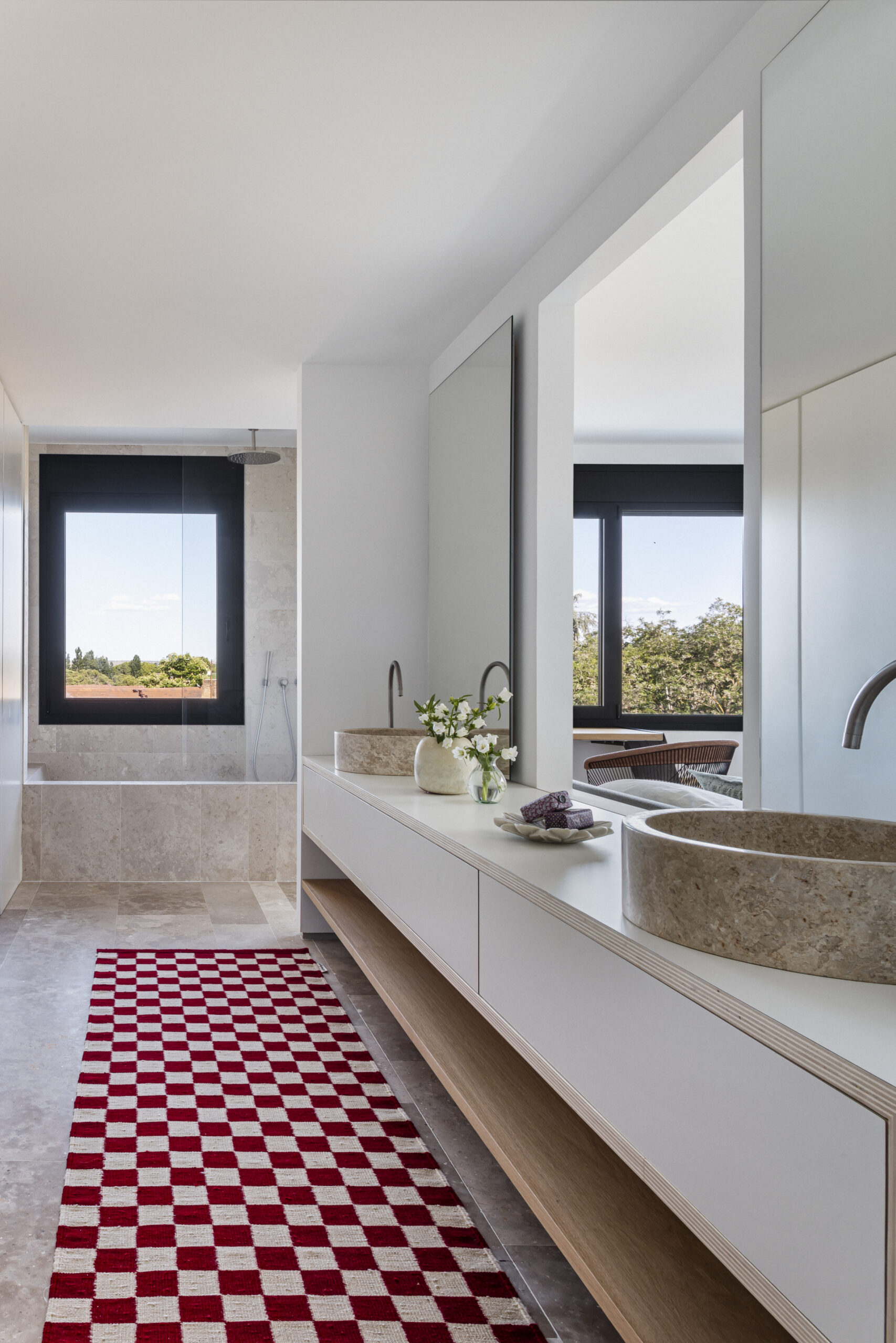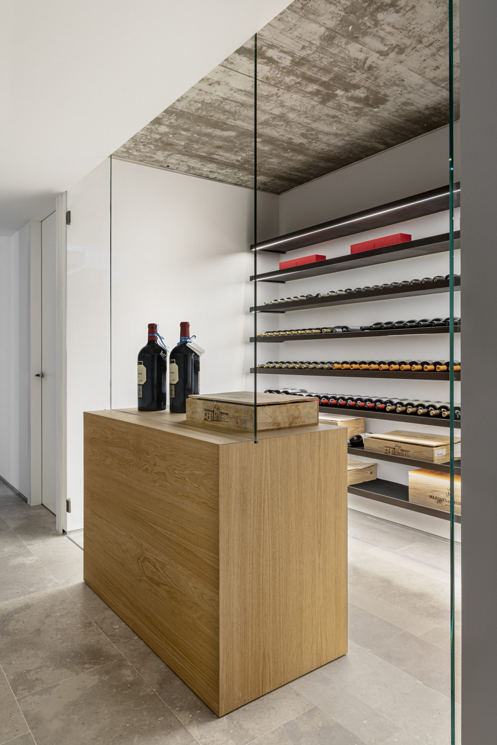 The ground floor is dedicated to common use spaces such as the kitchen and living room. The basement houses leisure activities, bringing together areas for games, cinema, and billiards. These spaces connect with outdoor areas like an English courtyard and the pool, always in touch with the outside environment.