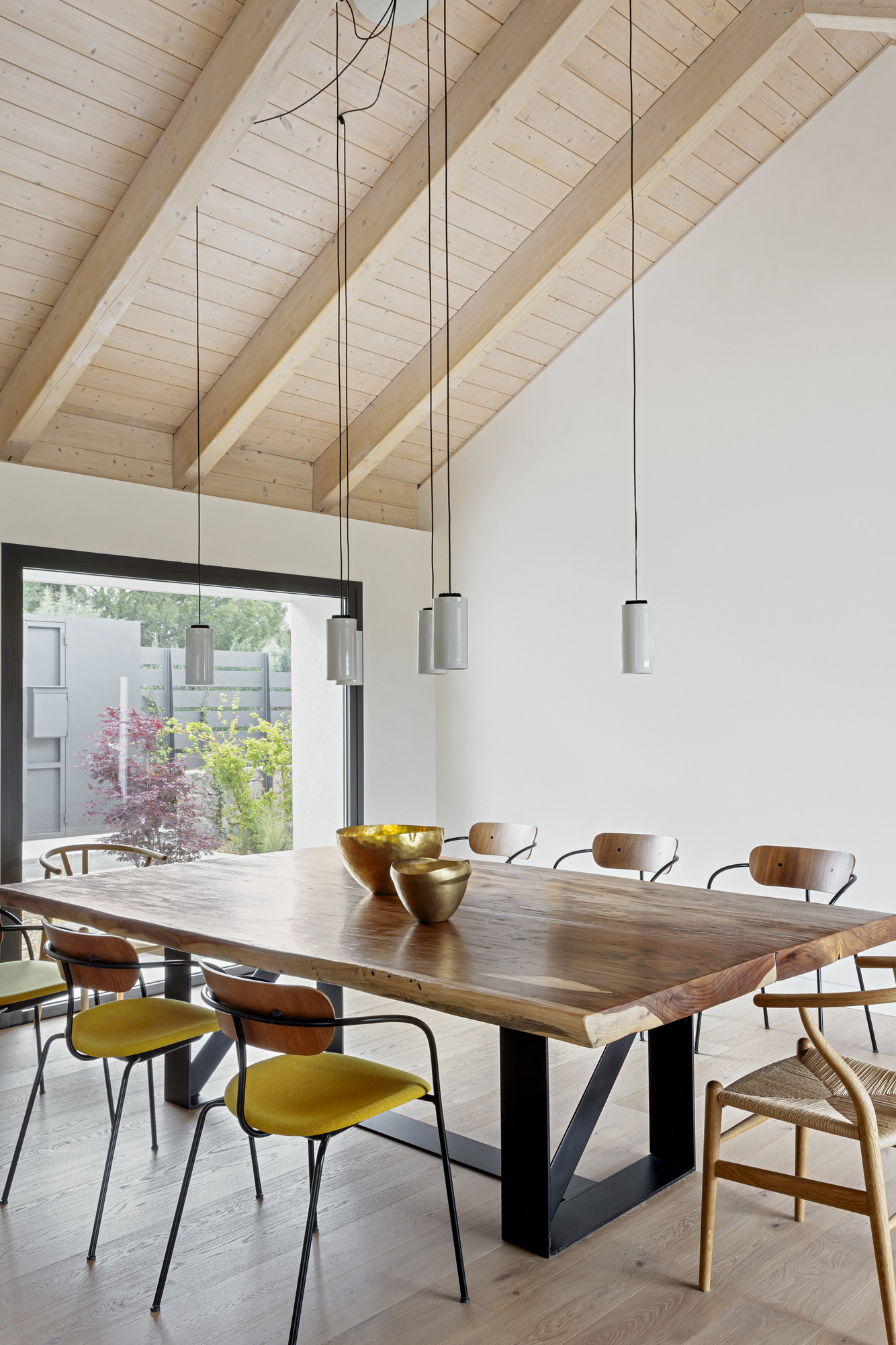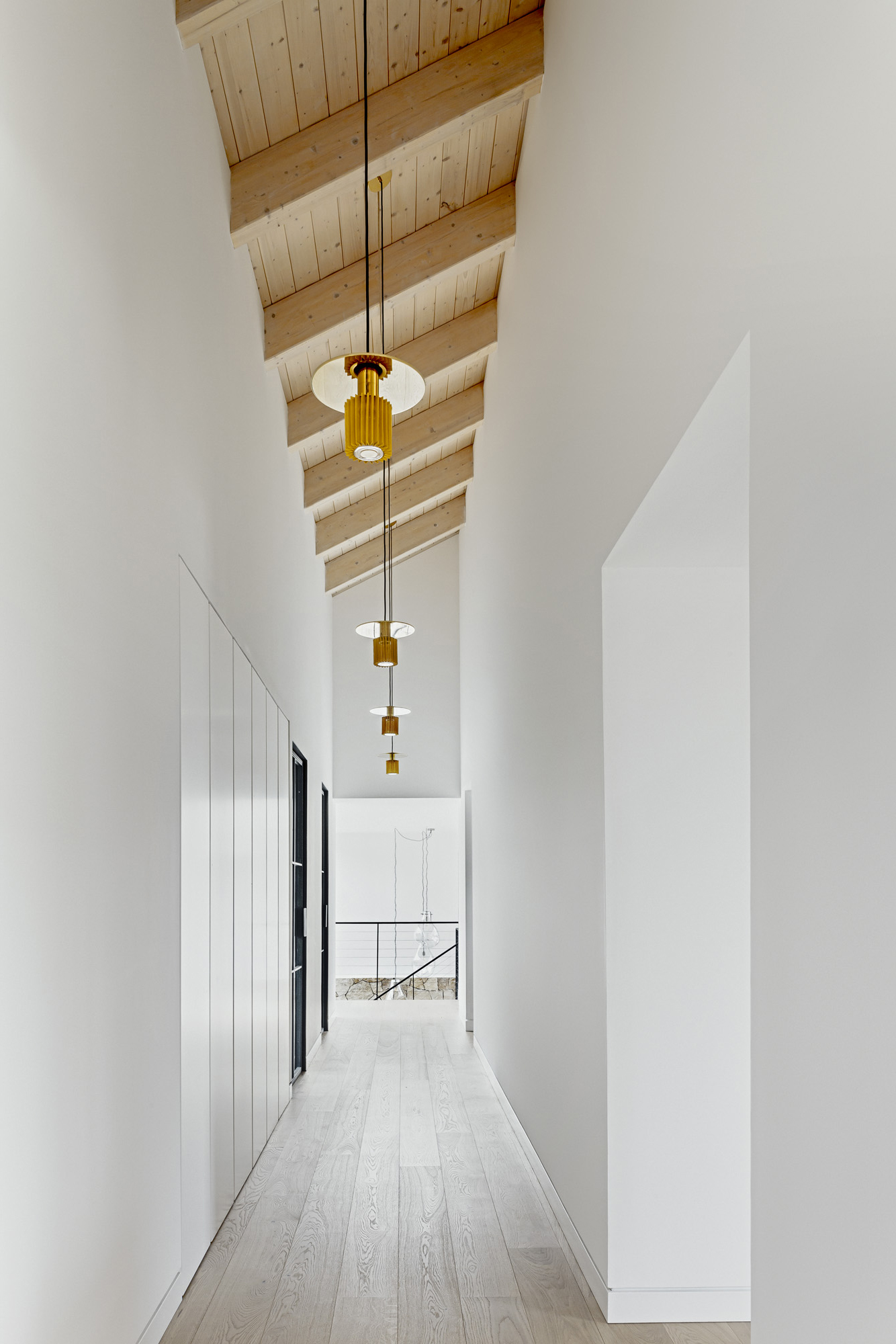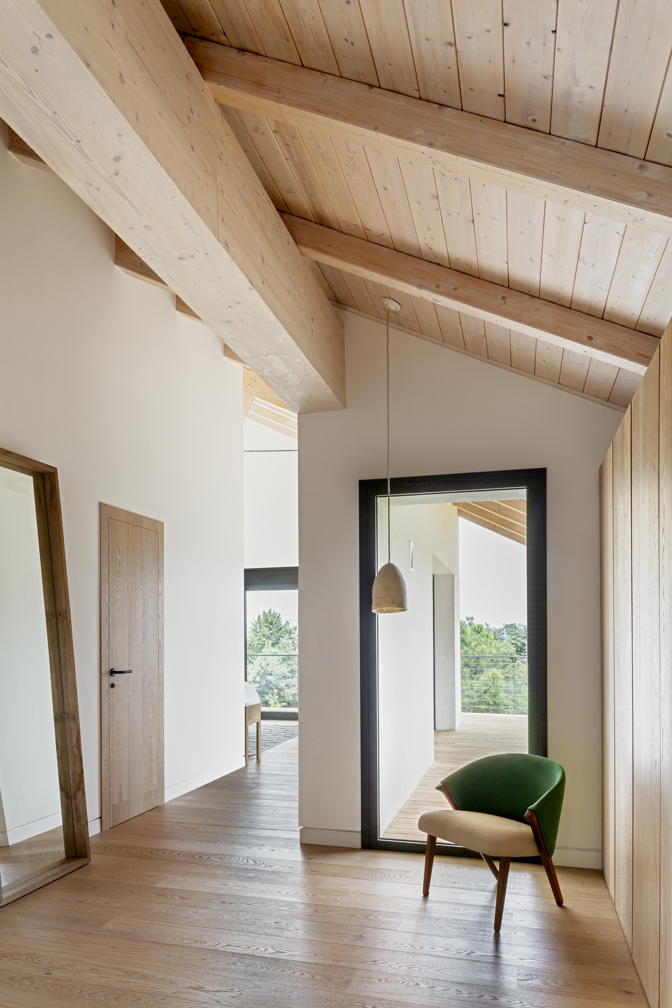 El proyecto se materializa de manera sencilla, mediante tres volúmenes rotundos con cubierta a dos aguas. De esta manera el esquema de circulación es de gran sencillez, otorgando gran comodidad al día a día de la vivienda.