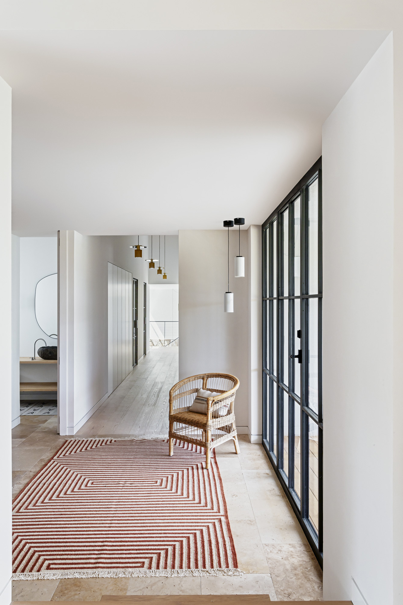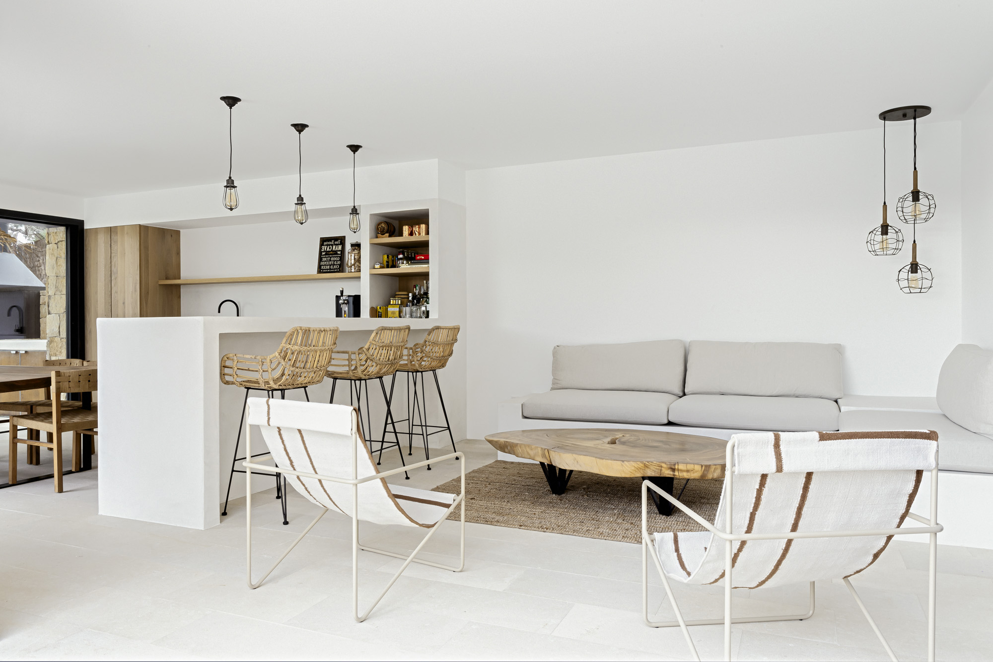 El interiorismo buscó generar un espacio cálido, en el que los protagonistas fueran los materiales nobles como la madera, la piedra y los tejidos naturales. Piezas cuidadosamente seleccionadas que tuvieran un carácter atemporal y acorde con la arquitectura de la construcción. Pretendíamos un amueblamiento muy cómodo y funcional que invite a compartir la casa con amigos y familiares.