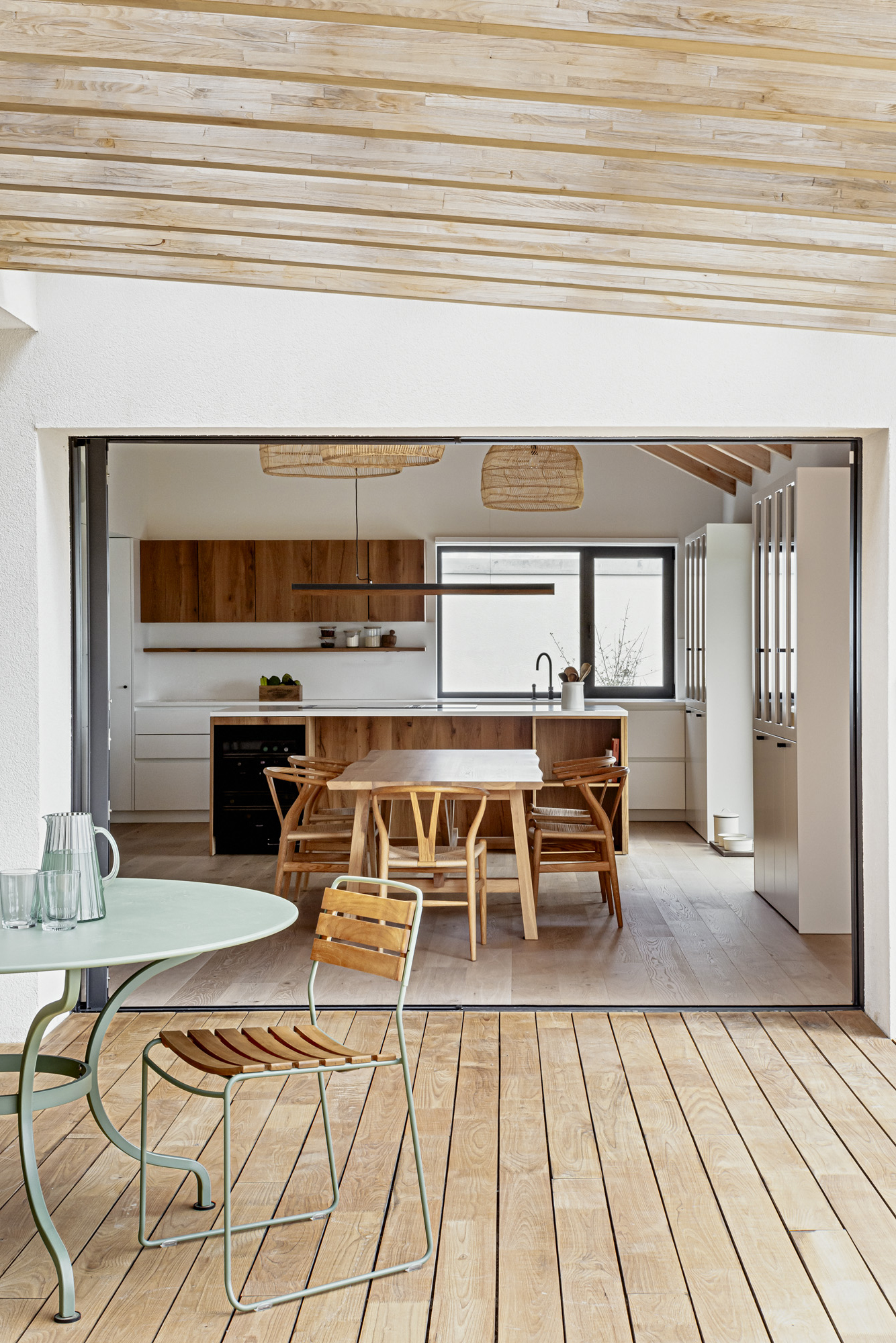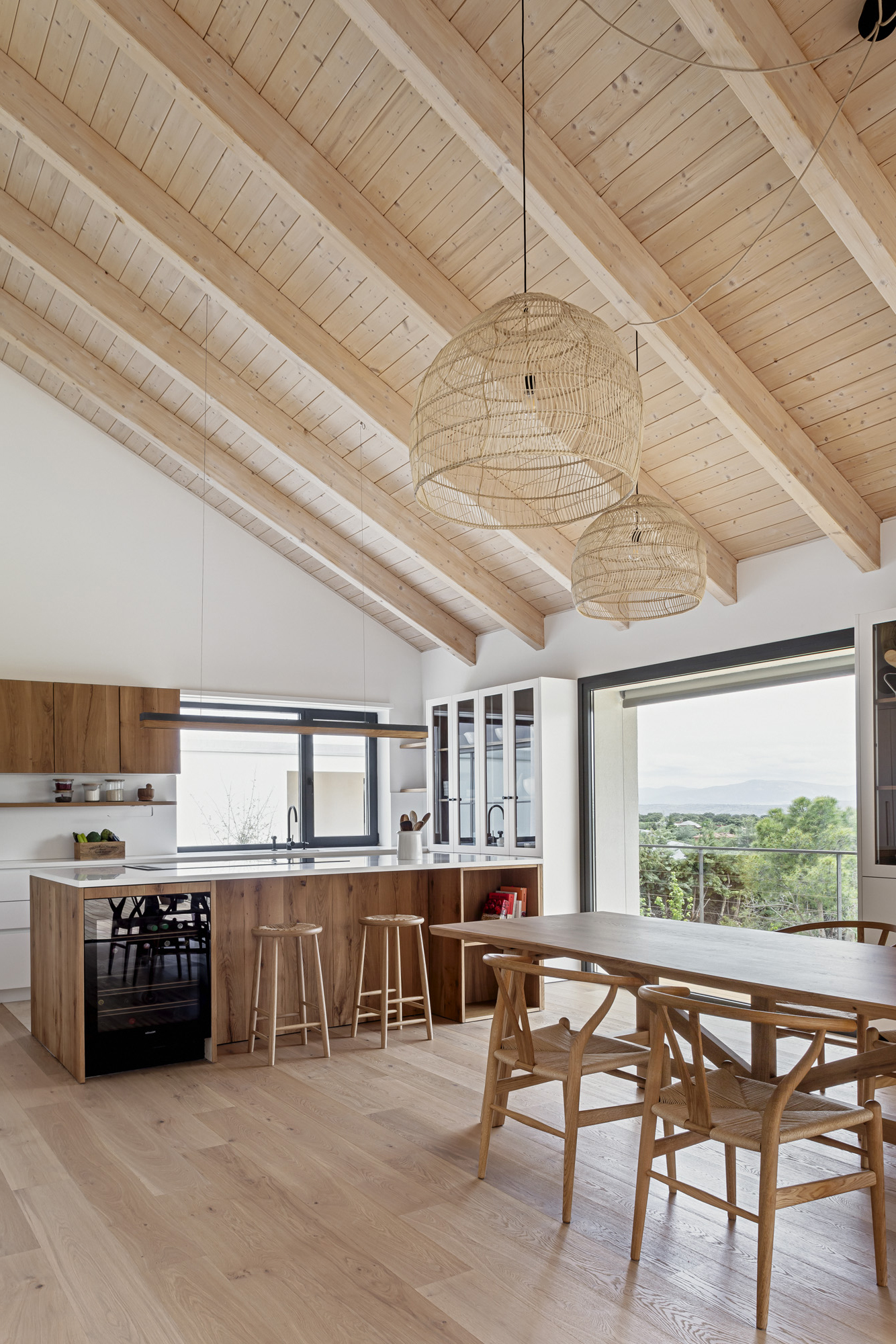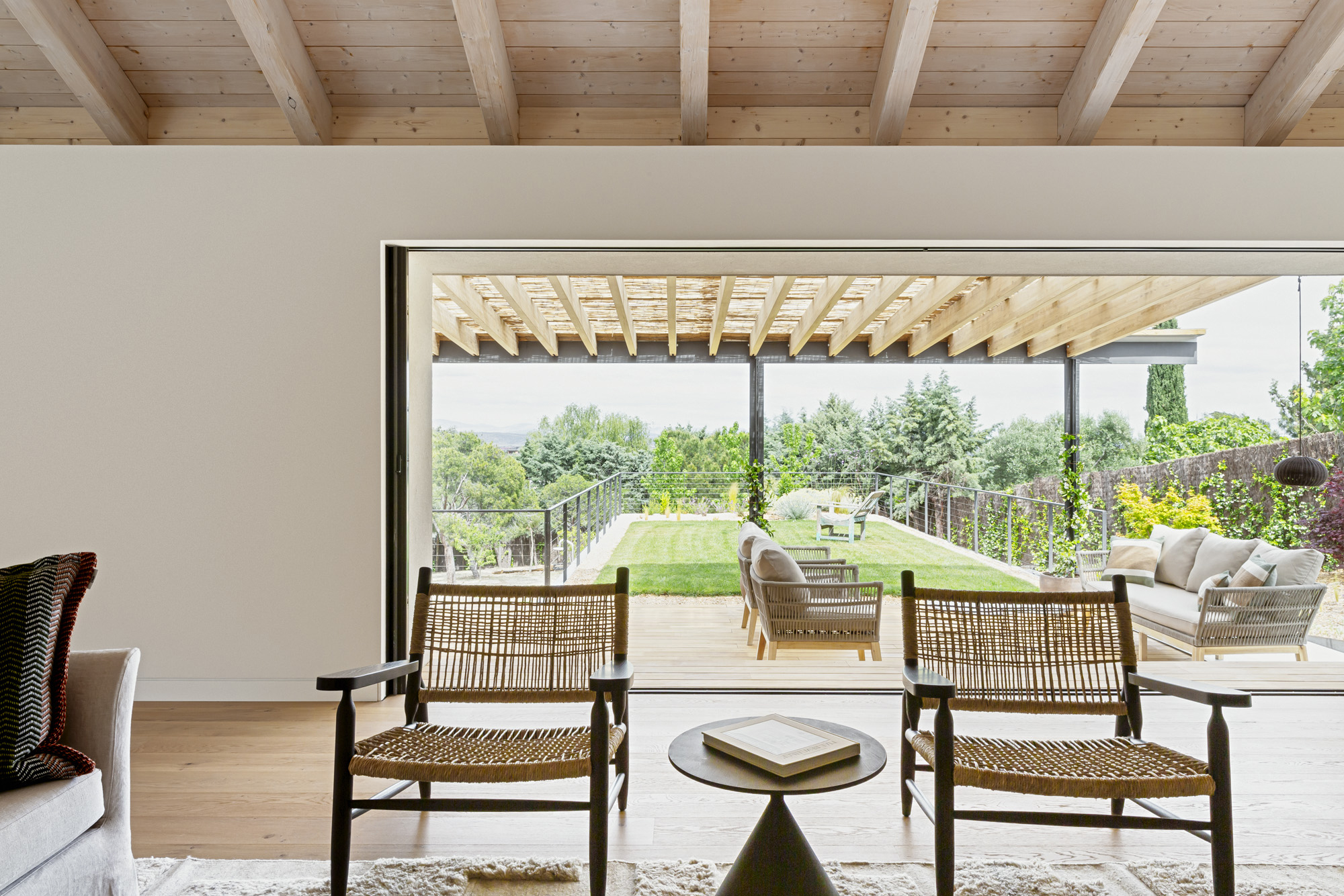 Buscamos el contacto con el exterior desde todos los espacios de la casa, generando grandes aperturas de huecos que permiten la entrada de luz, grandes porches en los que disfrutar del buen tiempo y de fantásticas vistas desde cada estancia.