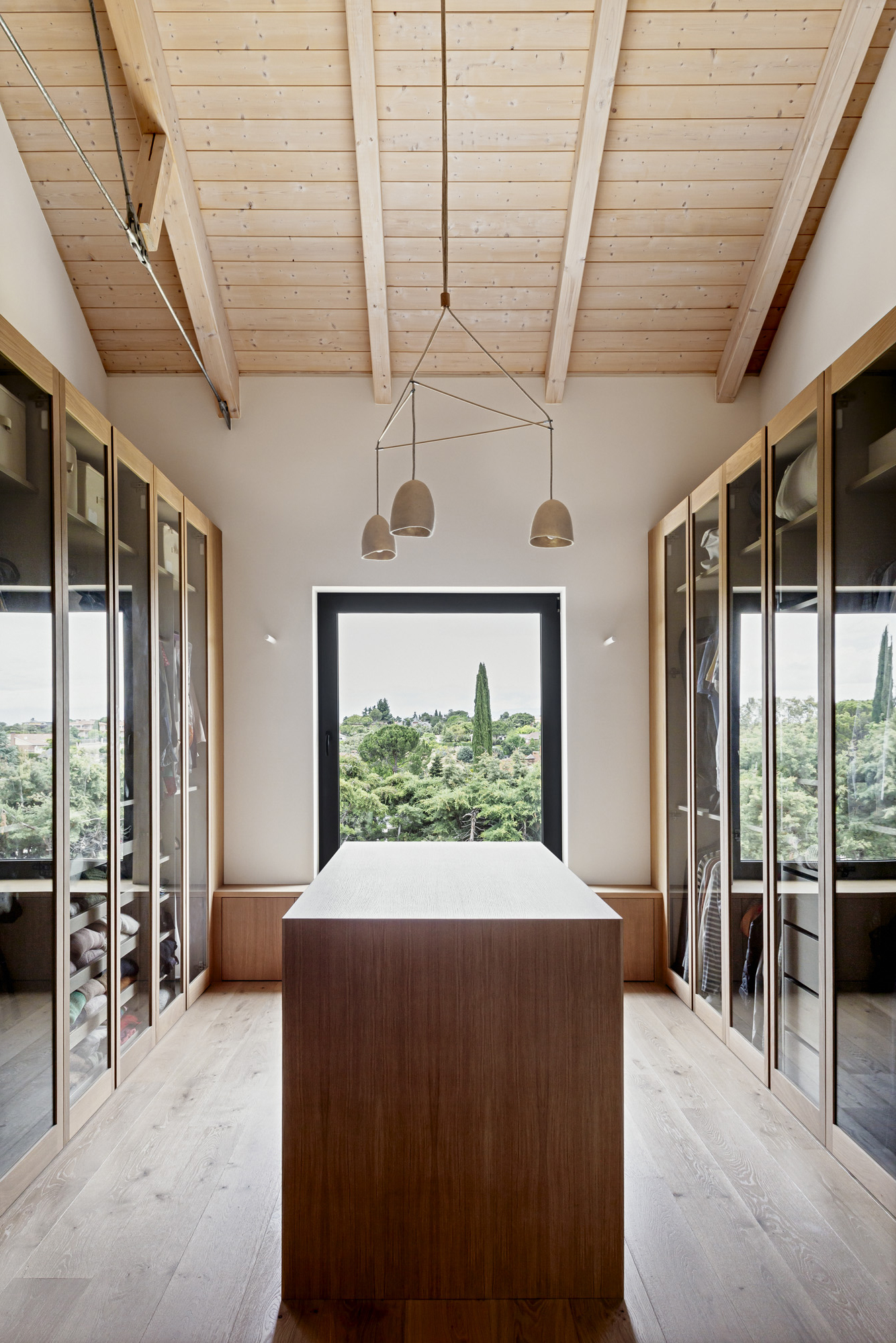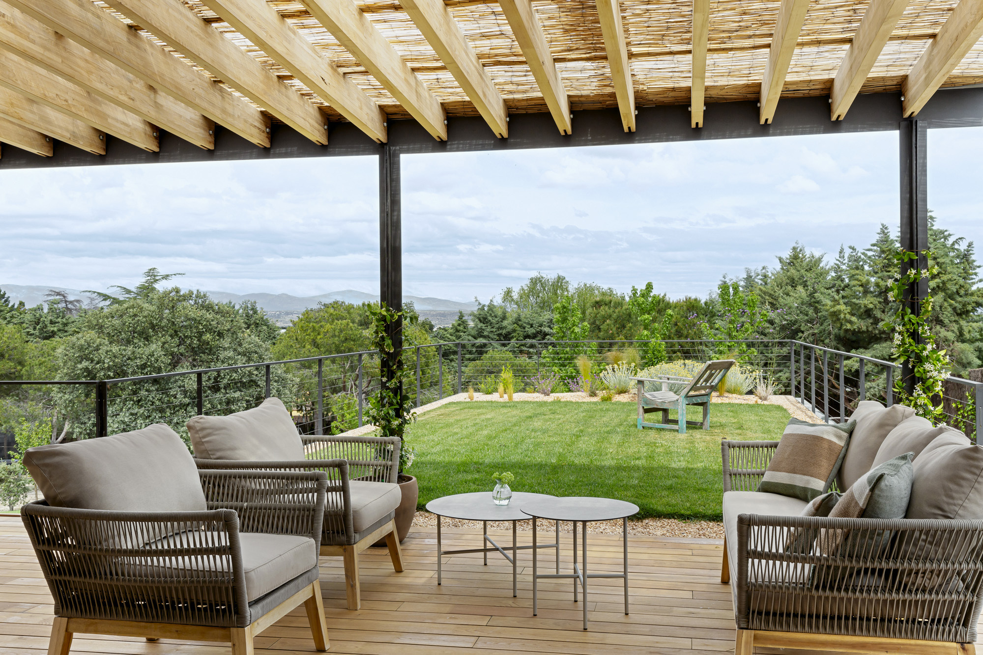 Otro de los objetivos del proyecto fue conciliar la apertura de la vivienda a Oeste, donde están las vistas a la Sierra y la apertura a Sur, para captar el mejor soleamiento. Por ello, la casa se extiende longitudinalmente a Este, pero los volúmenes que lo configuran se asoman para captar la orientación Sur.