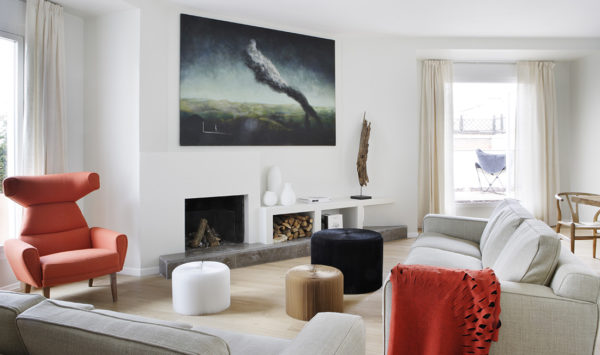 Un detalle curioso de esta casa está en la chimenea, que puede abrirse tanto hacia el salón como hacia el porche exterior, para permitir alargar el uso de este espacio cuando empieza a refrescar.
